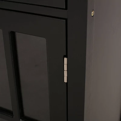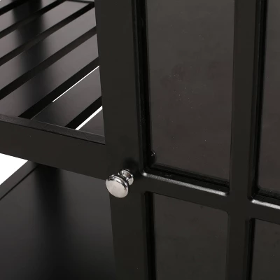 Put everything in its place with a beautiful combination of storage space. From its beautiful glass panel cabinet to its open shelving, our kitchen cart offers ample organizational space to upgrade your living standard with a breeze. This piece offers a stunning contemporary style and functional design that gives you plenty of options to effortlessly and efficiently store your kitchen accessories. Crafted with sturdy wood and rolling casters, our kitchen cart brings a fresh yet timeless look for all to enjoy.