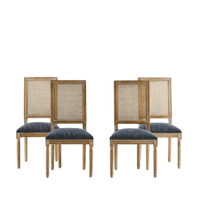 - FRENCH COUNTRY INSPIRATION: From slender fluted legs to a simple rectangular backrest made with cane, this chair set offers a French country inspiration for your home. The smooth upholstered seating of this set brings your home together with a classic touch.