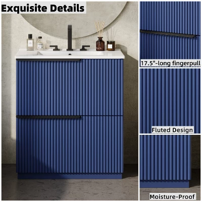 - HANDCRAFTED FLUTED DESIGN: The fluted surface adds sophisticated depth, playing with light and shadow for visual interest. Its vertical grooves resist fingerprints and smudges, helping the vanity maintain its elegant, low-maintenance finish.