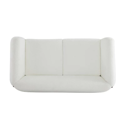 Imagine the Emma sofa as the centerpiece of your home, effortlessly transforming your space into a cozy, stylish retreat. Upholstered in soft off-white boucle fabric with a textured, nubby tweed finish, it adds visual depth to its generously rounded design. The 22.25-inch seat depth is perfect for lounging, while the removable cushions make for easy cleaning and maintenance. Natural espresso wood wedge legs beautifully highlight the grain, complementing the low-profile silhouette for a balanced, modern look. Ideal for modern, contemporary, Scandinavian, and casual interiors, this sofa is the perfect blend of comfort and sophistication. Don’t miss the matching armchair from the Emma collection, completing your space with cohesive style. A perfect addition to elevate any living room.