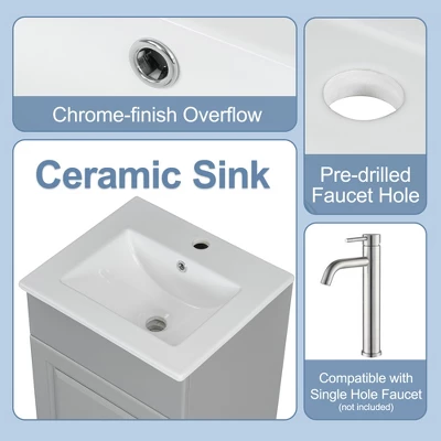 - CERAMIC SINK: Made of durable ceramic with a smooth, water-resistant finish that resists stains. Features a pre-drilled hole for a single-hole faucet (not included) and an overflow with a metal ring to prevent spills.