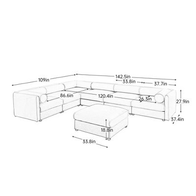 Dimensions: 109 inches deep x 142.5 inches wide x 27.9 inches high