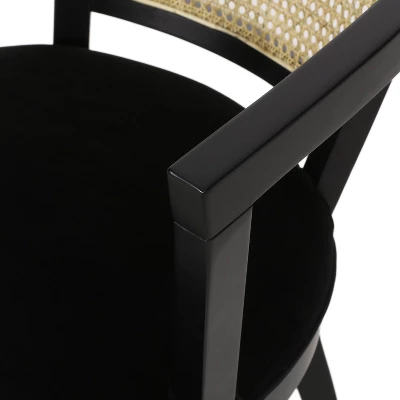 TRADITIONAL: With classic cane web backing and a rich, elegantly curved frame, our dining chair brings a regal style to any interior space. The smooth velvet seating emphasizes the traditional elements of the piece, giving your home a sophisticated and ornate atmosphere.