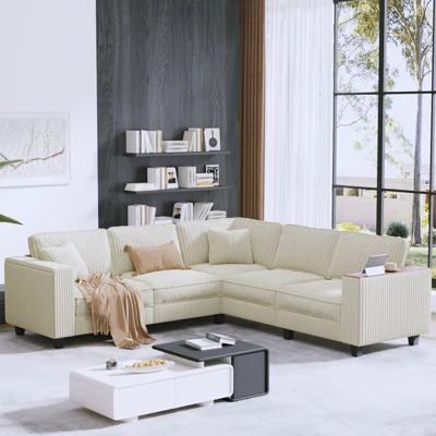 Upgrade your living space with the Oversized Cloud Sectional Sofa, a perfect blend of modern design and practical features. Upholstered in soft, easy-to-clean corduroy fabric, this sofa offers a cozy seating experience with detachable, washable cushion covers—ideal for families or pet owners. The built-in armrest storage compartments provide a discreet and convenient place to store essentials like remote controls, magazines, or blankets, keeping your living area organized. Its wood frame is padded with high-gauge coil springs and high-density foam, ensuring comfort and durability. Available in versatile gray, beige and black colors, this L-shaped sectional complements a variety of interior styles, making it a stylish addition to any home.