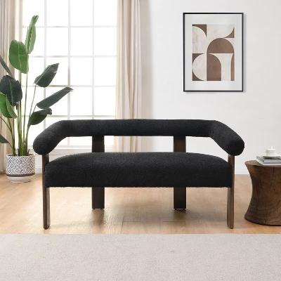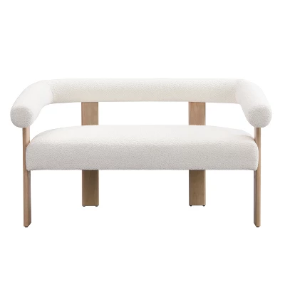 Introducing the modern loveseat – a beautifully crafted statement piece that adds style and comfort to any room. Featuring ergonomically curved armrests and backrests, this loveseat offers exceptional support for a truly relaxing seating experience. Its soft boucle fabric and modern, minimalist design effortlessly complement a variety of home décor styles. The curved, wraparound lines create a welcoming atmosphere, making it an ideal choice for a cozy and inviting space. Crafted with durable rubberwood, this loveseat combines both beauty and functionality, creating the perfect spot to unwind and enjoy moments of relaxation in any room.