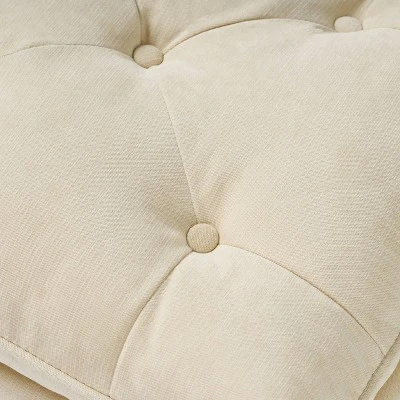 Add a unique flair to your interior space with a little extra padding and charming style. Featuring a plush pillow top that is accented with delightful button tufting, our ottoman is the perfect addition to any living room. This is finished with lovely turned legs and inviting upholstery, giving your home an elegant touch. Whether you are propping up your feet after a long day or are in need of extra seating for your guests, this lovely ottoman has you covered.