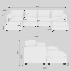 Christopher Knight Home 141.5” Fabric U-Shaped Sectional Sofa With Ottoman And Pockets