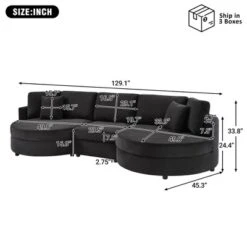 Christopher Knight Home 116″ Modern Curved Sectional Sofa With High-Density Sponge And 4 Pillows