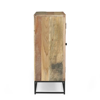 Fresh looks and a dash of modern industrial flair is the perfect finishing touch to your interior space. Featuring an eco-friendly wood structure for a one-of-a-kind design, our two-door cabinet brings a sophisticated yet boho touch to your home, complemented by a handcrafted finish for an antique look. This cabinet is completed with a stunning sunburst design and plenty of storage space, giving you ample room and style to organize your items. Blending seamlessly with your existing decor, this stand will bring out the best of your interior space.