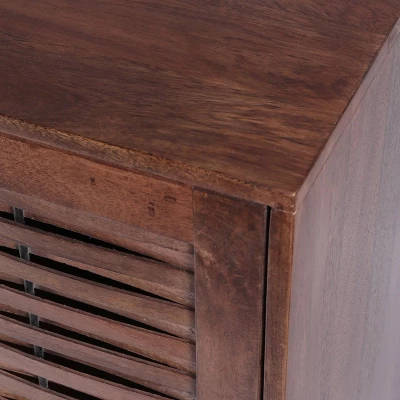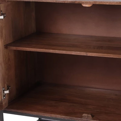 Hide away extra plates and utensils in stunning style with the perfect accessory of effortlessly functional design. Featuring beautiful mango wood for a one-of-a-kind design, our sideboard brings a stunning industrial boho look to your home, complemented by a sleek metal frame and a faux wicker design. This delightful buffet is completed with plenty of storage space, giving you ample room to organize your items. Blending seamlessly with your existing decor, this accessory will bring out the best of your interior space.